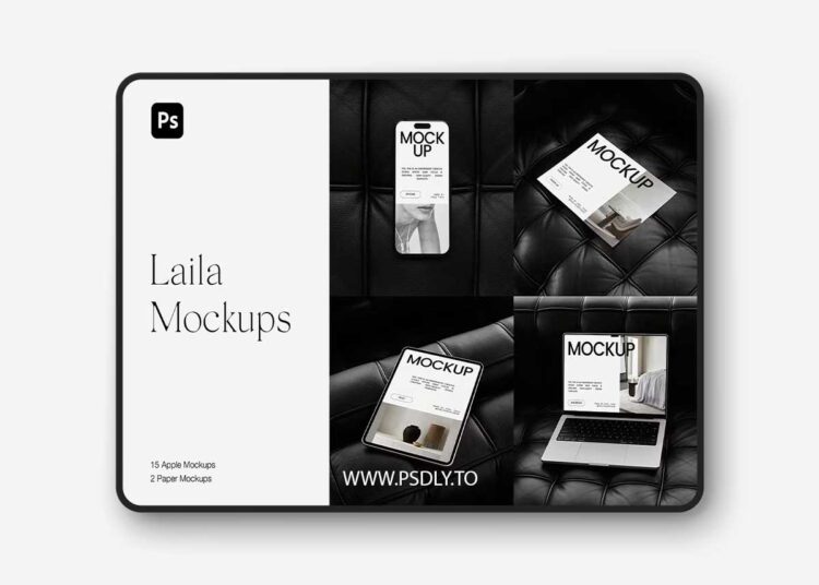 Laila is a collection of 17 editable MacBook, iPhone, iPad, and A4 Paper mockups for Adobe Photoshop.