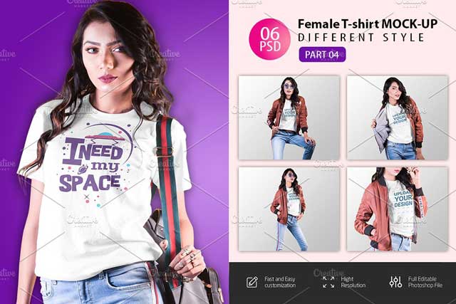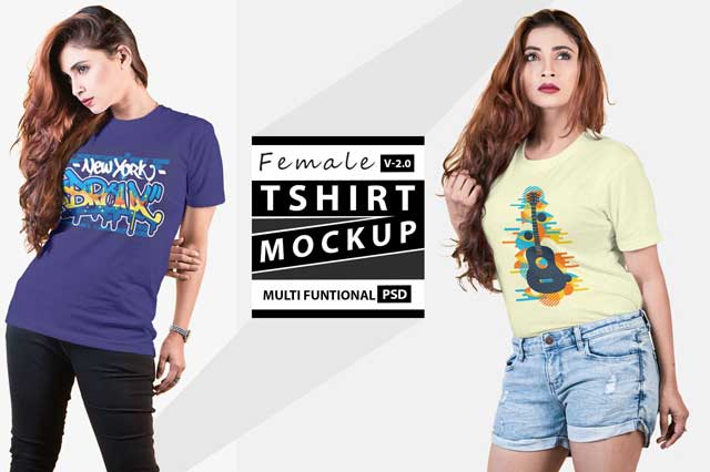 15 different styles of female PSD t-shirt mockup version 2.0. Simply put your design smart object and presentation your design within seconds.