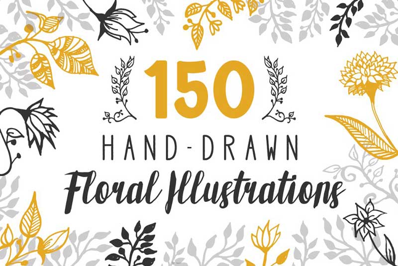 150 Hand Drawn Floral Illustrations